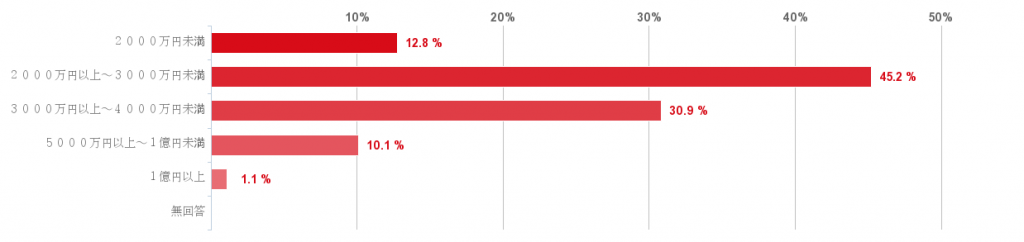 予算は、2000~3000万円が45%と半数くらいですね。